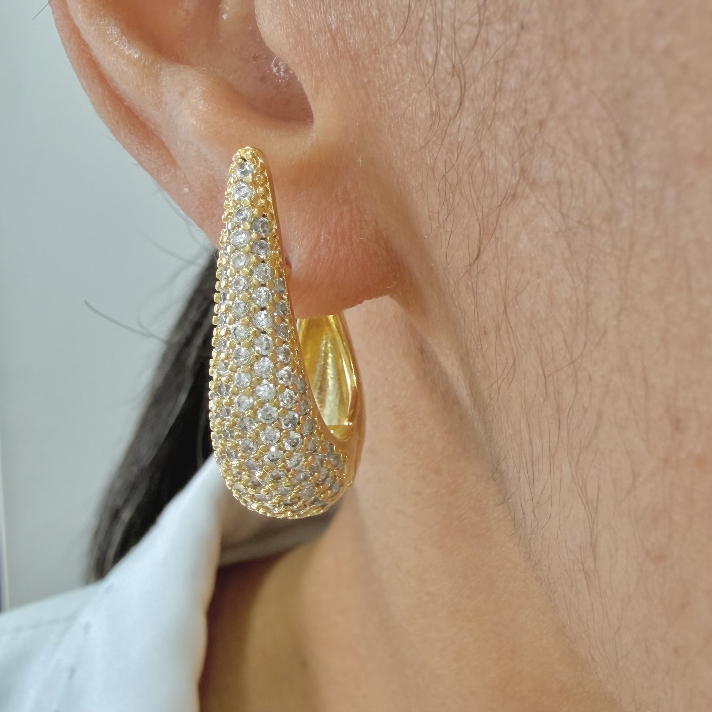 Dados técnicos: Brinco argola click cravejada de pedras 1,25mm zircônia, medindo 2,0cm de diâmetro BANHO DE OURO 18k.