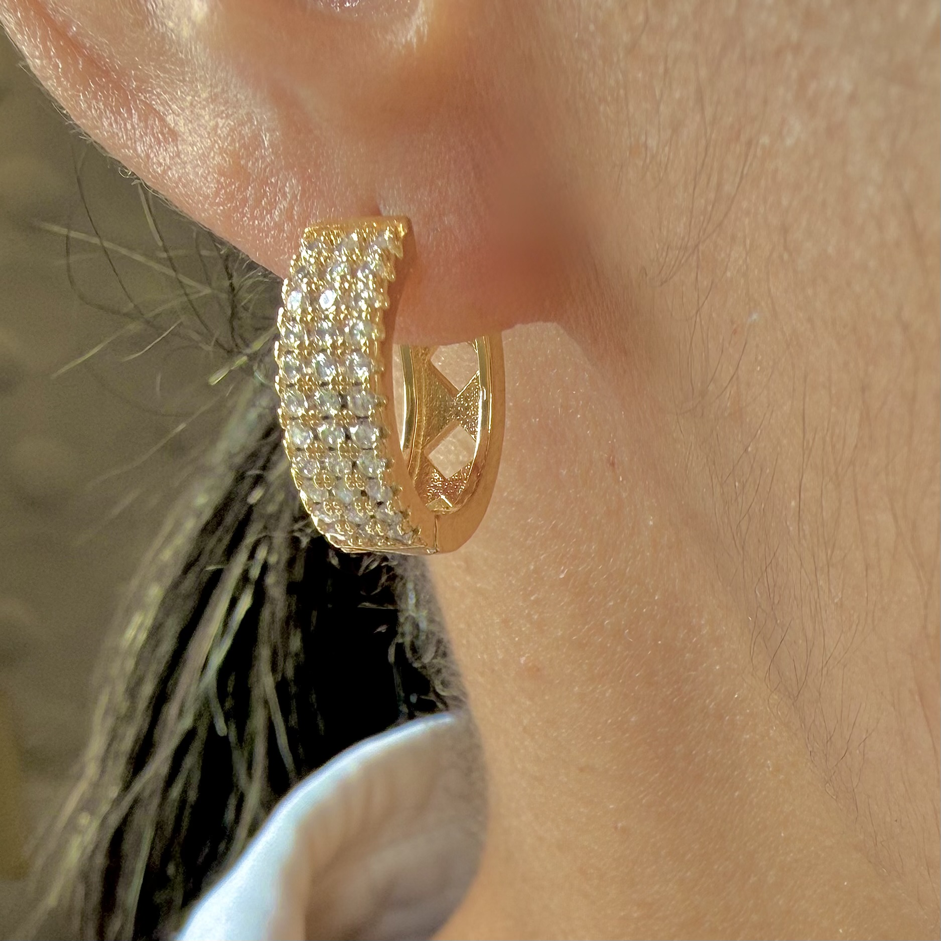 Obrinco Solar é uma argolinha click elegante e luminosa, com três fileiras cravejadas de zircônias que garantem brilho constante em cada movimento. Leve , seguro e perfeito para usar do dia a noite. Da coleção solar, ele simboliza o brilho que cresce em camadas, assim como a luz do amanhecer: discreto no tamanho, poderoso no impacto. Ideal para quem busca uma peça versátil, moderna e cheia de luz.